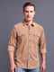 | White Corduroy Shirt has a Spread collar, Button placket, Long Regular sleeves, Double pocket with flap, and curved hem | |